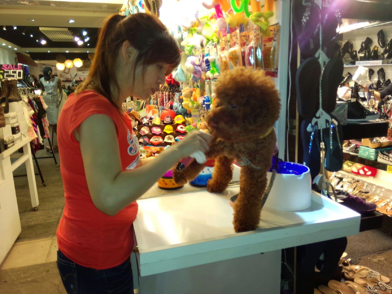 After the museum, I made my way to Shilin, the mother of all night markets, which are extremely popular in Taiwan. These markets are a mix of a town carnival, food carts and flea markets all rolled into one. I found myself overwhelmed by the choices of food -- from sausage to waffles shaped like penises (you've NEVER see that in China) to frog eggs -- and the sheer quantities of stuff for sale. T-shirts, gym shorts, baby bibs, iPhone cases, local Taiwanese snacks, hats and lingerie. Rounding the corner, there then would be a random station for dog grooming, next to some dresses for sale.